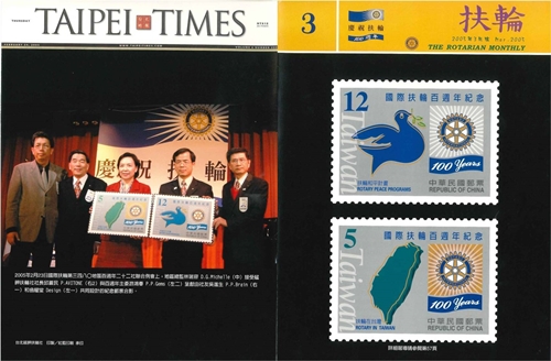 吳進生與翁耀堂2005年3月,為「中華郵政」設計國際扶輪百週年紀念郵票,登上《扶輪月刊》封面及各報,和Taipei Times頭版與評論版。